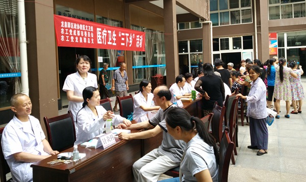 2015年7月9日,农工党成都市委会龙泉驿总支会同龙泉驿区政协教医文卫组深入到龙泉驿区大面街道龙安社区,联合开展医疗卫生“三下乡”为民服务活动,为社区居民进行免费义诊。