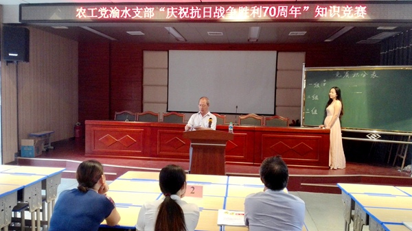2015年8月28日下午,农工党新余市委会渝水区支部在渝水区二小举行纪念世界反法西斯战争暨中国人民抗日战争胜利70周年知识竞赛活动。农工党新余市渝水区支部主委李斌亲自主持活动。渝水区统战部孔副部长应邀参加活动。