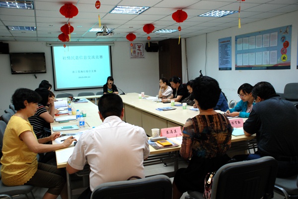 2015年9月22日,迎龙社区卫生服务中心会议室气氛热烈,农工党无锡市南长综合支部正在此举行“社情民意信息交流竞赛”活动。