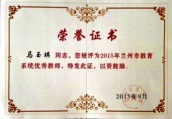 在第31个教师节来临之际,兰州市教育局隆重表彰了一批为推动全市教育科学发展、做出积极贡献的先进个人,授予312名优秀教师为兰州市教育系统“优秀教师”荣誉称号。其中,农工党兰州市七里河区总支三支部主委、北京实验二小兰州分校副校长李瑛,农工党兰州市七里河区总支党员、兰州市七里河区小学副校长马玉琪获此殊荣。