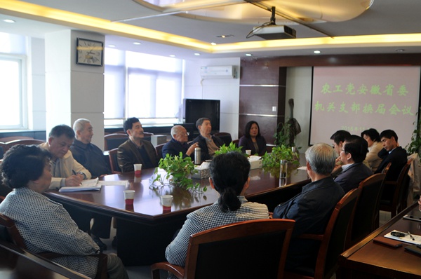 2015年11月3日,农工党安徽省委会机关支部委员会召开换届会议。省委会专职副主委方才,省委会机关副巡视员韩正平、省委会秘书长余成林等出席会议。会议由省委会组织部部长王国祥主持。