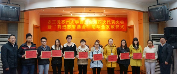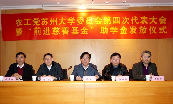 2016年1月4日下午,农工党苏州大学委员会第四次代表大会暨“前进慈善基金”助学金发放仪式在苏州大学本部红楼会议中心隆重举行,农工党苏州市委会主委周俊,副主委兼秘书长张健红出席会议。中共苏州市委统战部副部长钱培华、苏州大学党委副书记高祖林应邀出席会议并讲话。