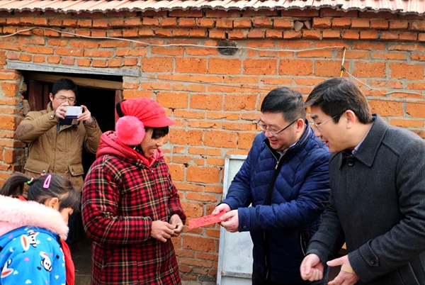 邢卫锋一行走进贫困户家中了解他们的生产、生活情况以及存在的困难,并为他们送上了慰问金和慰问品,致以新年的美好祝福。
