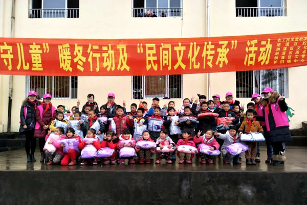 2016年12月16日,农工党泸州市纳溪区支部联合区文化馆开展的“关爱留守儿童暖冬行动”在岩区护国镇大理小学举行,为留守学生送去温暖,传递爱心。