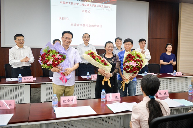 大会听取并审议通过了中国农工民主党上海交通大学第一届委员会工作报告。粟莹代表全体党员向赵立平、邵华、刘萍、杨燕华四位离任委员宣读了致敬信。大会选举产生了农工党上海交大第二届委员会。在随即召开的二届一次会议上,韩泽广当选为农工党上海交大第二届委员会主任委员,黄林鹏、蔡骏、粟莹当选为副主任委员。(顾维哲)