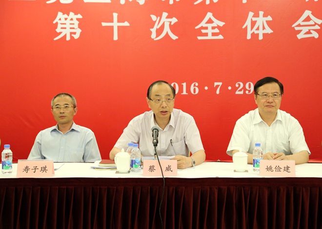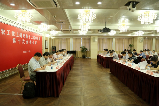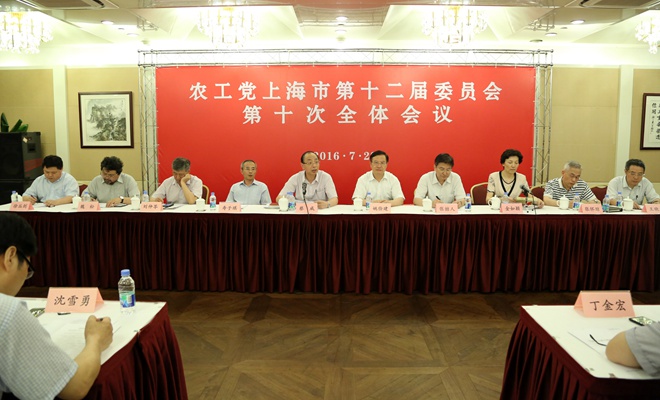 2016年7月29日下午,农工党上海市委会在市政协5号楼三楼丽都厅召开十二届十次全体会议。会议传达学习了农工党第十五届中央常务委员会第十四次会议精神,通报了农工党市委2016年上半年工作,并对下半年工作进行了部署。农工党中央副主席、上海市政协副主席、农工党上海市委会主委蔡威出席会议并作工作报告。