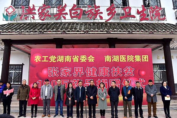 2016年12月11日,农工党湖南省委会联合南湖医院集团向张家界市因病致贫、因病返贫农户捐赠100万药品活动在张家界市桑植县洪家关白族乡卫生院举行。