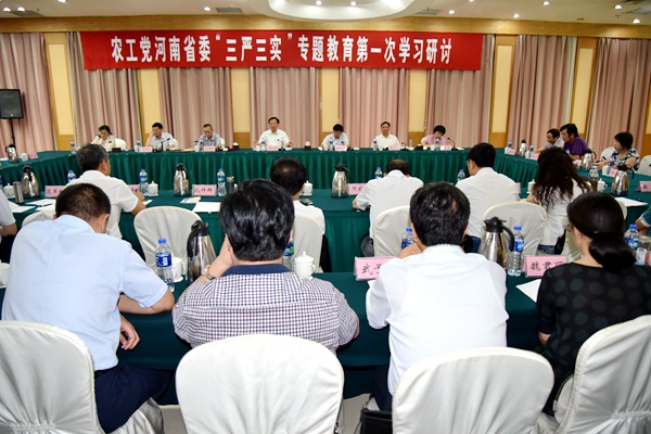 2015年6月,在农工党河南省六届十三次常委会上审议通过了开展“三严三实”专题教育的实施方案,明确要求把“三严三实”专题教育融入学习实践活动。省委会召开了动员会、两次专题学习研讨,对各市开展了督导检查。要求省市级组织领导班子深入查找在思想、组织、制度、作风、廉政、机关、班子建设以及在履行职能、发挥作用等方面存在的不严不实问题,有针对性地加以解决;要求党员干部自觉践行“三严三实”,努力在六个方面走在前、做表率,即严以修身,做修己正身、信念坚定的表率;严以用权,做履职尽责、参政为民的表率;严以律己,做克己奉公、廉洁参政的表率;谋事要实,做遵循规律、求真务实的表率;创业要实,做真抓实干、务实参政的表率;做人要实,做公道正派、忠诚可靠的表率。高体健主委在《前进论坛》第10期上发表了题为“民主党派干部也要自觉践行‘三严三实’”的文章。