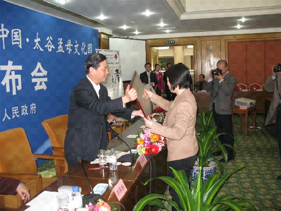 发布会主要介绍了2012中华母亲节推动大会暨中国·太谷孟母文化园的基本情况。山西省社科院研究员孟繁仁介绍了太谷孟母故里的考证情况,中华母亲节促进会会长李汉秋介绍了孟母的历史地位、思想教育内容及推广价值。刘峻杰部长在会上为太谷县授予了“中华母亲节活动基地”铜牌。