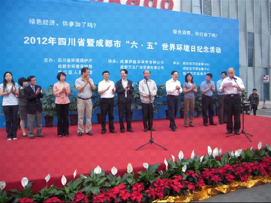 6月5日上午,农工党四川省委、成都市委和省环保厅、省卫生厅、市环保局、锦江区政府在伊藤洋华堂锦华店广场联合举行了“第五届中国环境与健康宣传周”暨2012年“‘六·五’” 世界环境日纪念活动。省政协副主席吴正德、省政府副秘书长何旅章、省委宣传部副秘书长曹雨真、省环保厅副厅长钟勤建、省妇联宣传部部长周晓俊、成都市政协副主席侯一平、市环保局局长王文斌,锦江区政府副区长郑勇、区政协副主席宋宗铭等领导,以及大学生志愿者、市民代表、老年骑游队、伊藤洋华堂员工共计300余人参加了纪念活动。在活动仪式上,省政协副主席吴正德、省环保厅副厅长钟勤建分别讲话,号召社会各界群众以饱满的热情积极投身绿色经济与健康低碳生活中来,为实现成都市经济社会可持续发展做出新的贡献。