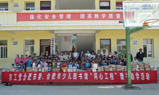 9月14日,农工党合肥市委联合合肥市少儿图书馆,驱车几百里,赴金寨县张冲乡黄畈村中心小学,赠送少儿书籍2000余册、书架10余副,并给寄宿的孩子们带来一些食品和中秋月饼,活动受到黄畈村中心小学全校师生的欢迎。农工党合肥市委副主委林莉、市少儿图书馆副馆长陆其美、农工党合肥市文艺支部主委毛欣然和机关同志一同参加活动。