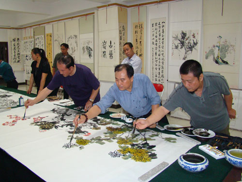 本次书画笔上,我党书画艺术家孟争、马宏、裴希敏、熊晋、汤松翰、李金鹏、张素芳等参加作品创作。他们豪情满怀,挥毫扑墨,用笔墨抒发各自的情怀,用实际行动迎接中国共产党“十八大”顺利召开。