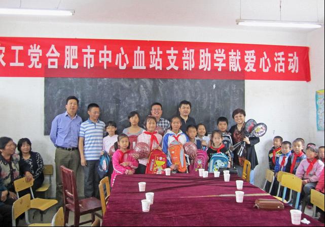10月13日,农工党合肥市中心血站支部胡晓玉主委组织支部党员,赴金寨老区开展捐资助学活动,为贫困地区留守儿童传递一份爱心,履行一份社会责任。农工党合肥市委副主委林莉、组织部部长吴岚岚应邀参加活动。