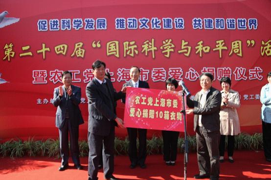 普陀分会场则暖意融融,长风慈善超市爱心捐赠仪式上,农工党市委秘书长王晓东将童装等爱心捐赠品交到了长风新村街道办事处副主任姚金彪手中。普陀区委统战部部长郭芳盛赞农工党市委、普陀区委与长风街道社区共建工作取得丰硕成果。长风公园内,来自瑞金医院、中山医院、华山医院的我党医疗专家提供免费医疗咨询300余人次,受到广大社区居民的热烈欢迎。