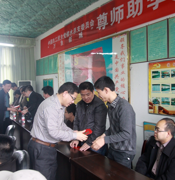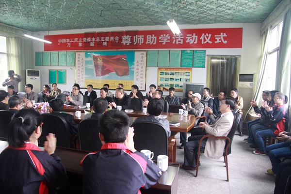 2014年4月13日,农工党江西修水县总支委员会到该县一中开展尊师助学活动,给26名高三教师和34名高三优秀贫困学生每人送去300元慰问金,并给高三年级部送去价值2000元的办公设备。同时,该县教育支部党员就考前辅导与高三班主任、学生代表座谈交流。(黄一魏 )