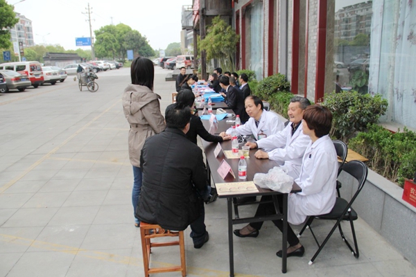 当天,农工党海宁总支组织医疗专家和律师在富春骨伤中医馆广场举行法律援助咨询和医疗义诊服务活动。(卢明华 )