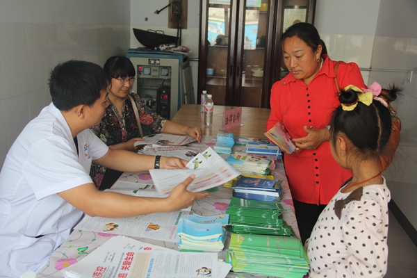 在第七届中国环境与健康宣传周期间,2014年6月8日,农工党唐山市委会赴丰润区火石营镇革命老区开展义诊、法律咨询和环保宣传活动,发挥自身优势,服务老区人民。