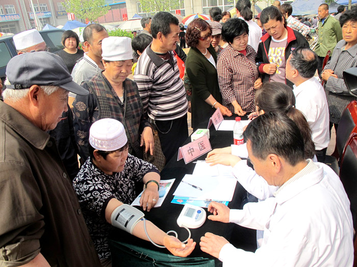 听说市里的专家来给免费看病查体,回族群众早早来到活动现场排起了长队,医疗专家到达现场后顾不上休息,马上利用携带的专业医疗器械为群众测量血压、看病开方,边看病边向群众认真讲解季节性常见疾病的预防和治疗常识,传授健康知识,并耐心细致解答群众各种疑问。活动现场发放了300余册健康知识宣传册,600多人当场受益。发挥界别优势,服务少数民族群众是农工党唐山市委会的优秀传统,进民族村义诊慰问活动已连续开展了七年。七年间,农工党医疗专家的义诊足迹遍及唐山市开平区夏庄、丰润区小坡村等十余个少数民族乡村,为回、满等5000余名少数民族群众免费查体诊病,赠送药品共计3万余元,活动得到了少数民族群众的热烈欢迎,为促进民族大团结,提升基层群众健康水平发挥了积极推动作用。(农工党唐山市委会 冯丽娜)