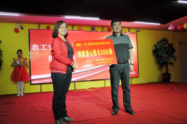 2015年6月13日上午,农工党包头昆区四支部的20多位党员来到固阳县,将3000册图书捐给了固阳县蒙古族小学的孩子们。