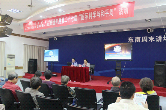 2015年11月10日下午,农工党福建省委会联合农工党福州市委会、温泉街道汤门社区在省图书馆报告厅成功开展第二十七届中国“国际科学与和平周”宣传活动。针对目前社会信息诈骗现象严重的情况,主办方邀请福建省公安厅刑侦总队四支队支队长、福建省警察学院侦查系副主任、公安部刑侦局特邀专家刘世明作《常见虚假信息诈骗犯罪的解析与预防》讲座。刘世明支队长结合日常生活中的真实案例,通过多媒体演示讲信息诈骗的常见方式,分析案例特点及作案手段,并传授了相关应对方法。讲座非常精彩,受到听众的热烈欢迎,产生了非常好的社会影响。