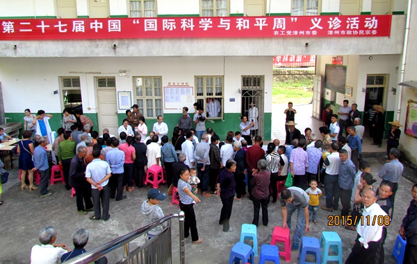 此外,中共龙海市委统战部、农工党龙海总支于11月7日联合组织义诊医疗队到龙海市东泗乡卓港村开展第27届中国“国际科学与和平周”义诊活动,来自龙海市第一医院、第二医院的12名农工党专家为老区群众提供内科、外科、皮肤科、中医科等义诊服务,当天共义诊咨询200多人次,赠送药品2000元,同时还开展农业科技咨询,发送宣传材料2000多份,受到老区群众的好评。