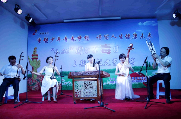 6月22日下午,农工党福建省委会副主委郑新清率省委会社会服务部同志在省戒毒局陈友瑜政委、陈章平副局长的陪同下,赴福建省未成年人司法强制隔离戒毒所联合开展“6.26国际禁毒日”主题系列帮教活动。亲切慰问帮教戒毒学员,与戒毒人员家属一同观看 “重塑少年青春梦想、谱写人生健康未来”文艺汇演。此次文艺汇演活动由农工党文艺三支部党员担任节目的编导,省歌舞剧院、小记者团演员与戒毒学员同台演出了“成成学法律”、“女中音独唱《卓玛》”、“戒毒学员街舞《青春修炼手册》等一系列感人节目。此次联合帮教活动,让社会各界近距离了解未成年人强制隔离戒毒场所和他们的教育戒治情况,扩大了宣传禁毒戒毒社会影响力。