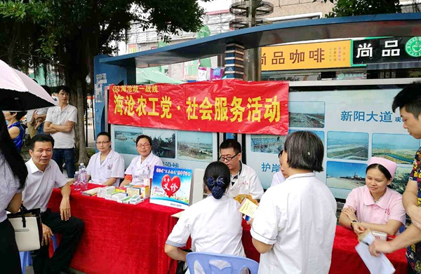2016108日下午,农工党厦门市海沧区基层委组织内科、外科、妇产科、骨科、理疗科等医疗专家在新阳悦实广场参加海沧区民政局主办、老龄办、新阳养老院、新阳街道等协办的百善海沧老年节庆祝活动,免费为社区200多名老人和群众提供诊疗服务和健康咨询,并赠送价值5000元的药品,深受老年朋友和广大群众的欢迎和点赞。(邱瑞武)