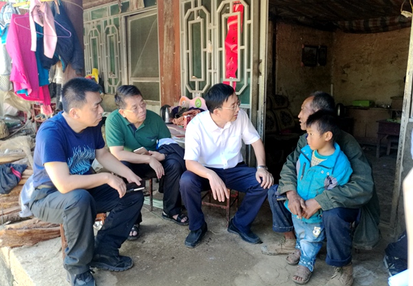 16日下午,刘献祥率调研组在施甸县摆榔乡开展入户慰问调查。刘献祥一行冒着酷暑、踩着泥泞的村道,深入到贫困户家中实地调研。