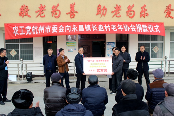 2017年12月8日上午,农工党杭州市委会赴“百千万”蹲点调研联系点富阳区永昌镇,分别在昌岭村、长盘村老年食堂举行捐款仪式。农工党杭州市委会主委周智林出席捐款仪式并讲话。中共富阳区永昌镇党委、政府和区慈善总会负责人,昌岭村、长盘村两委班子成员以及富阳区基层委负责人参加仪式。