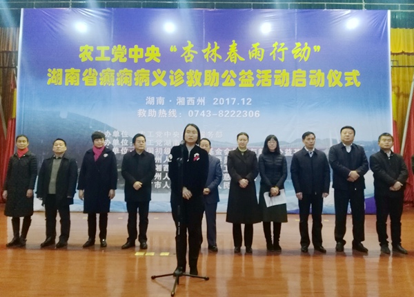 2017年12月22日,由农工党中央社会服务部主办、农工党湖南省委会协办,中国初级卫生保健基金会健康与教育公益基金、湘西州人大科教文卫委员会、民盟湘西州委、湘西州卫计委、湘西州人社局、湘西州慈善总会,吉首市人大、吉首市政府承办的“杏林春雨行动”湖南省癫痫病义诊救助公益活动在湘西州启动。