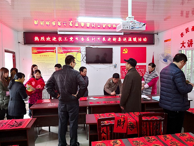 在慰问中,胡家正一行与当地村民、村干部亲切交谈,了解了村民生活状况和全村脱贫攻坚工作开展情况。胡家正肯定了全村过去一年的发展变化,并表示市委会今后将继续发挥自身特色和优势,帮助贫困户早日脱贫致富。随后,胡家正为村民送上亲自题写的春联,给大家送上新年祝福,鼓励大家坚定信心、自立自强,战胜困难,过上幸福生活。