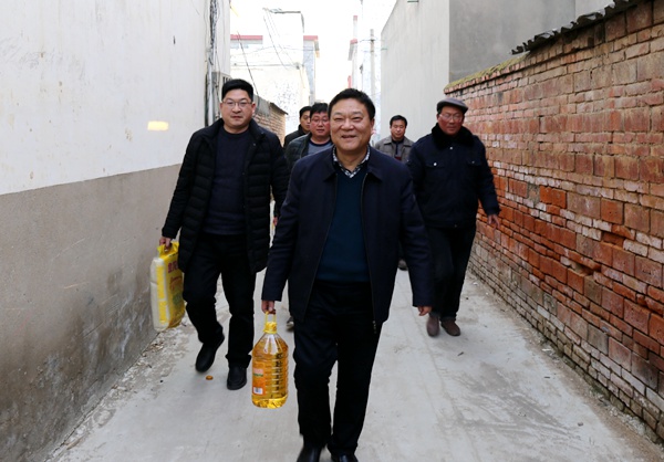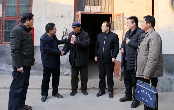 68岁的人和乡河沿张村万平均一家三口,除自己患有长期慢性病外,69岁的妻子韩爱菊也身患严重的风湿病;儿子身故,妻子改嫁;更为不幸的是腊月二十二,与万平均一起生活的孙子万虎子,由于患白血病多年、刚满20岁不治病故,他们是典型的因病致贫家庭,生活十分困难。来到精准扶贫结队帮扶对象万平均家中,张勇刚为其送去了价值近400元的米、面、食用油慰问品,以及爱心企业驻马店市驿城区传诚文化传播有限公司捐赠的5000元慰问金,预祝他们过一个欢乐、祥和、幸福的春节。张勇刚鼓励万平均及其老伴要振奋精神,保持乐观向上的生活态度,坚信困难只是暂时的,在组织的关心下、帮扶下,生活一定会越来越好,通过不断努力,过上幸福的晚年生活。张勇刚要求驻村干部要经常关心老人,在医保报销、民政救济、发动社会帮扶等方面给予帮助,及时解决他们生活中遇到的困难,使他们能够老有所依、老有所乐,安享晚年。万平均眼含热泪紧紧握着张勇刚的手连连感谢组织、政府的关心。