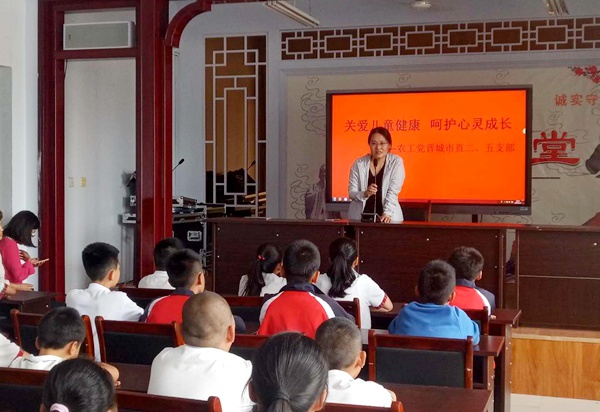 端氏寄宿小学共有400多名学生,大部分来自于周边农村,以留守儿童居多,这些孩子不仅需要物质上的帮助,更需要心灵上的慰藉和关怀。2018年5月29日上午,党员们不辞劳苦,驱车一个多小时来到该校,在校长的安排下,对五年级100多名学生开展了健康卫生心理知识讲座,整个教室座无虚席,由于人数多,后面又增加了许多座椅,许多老师和家长也参与到了听课当中。