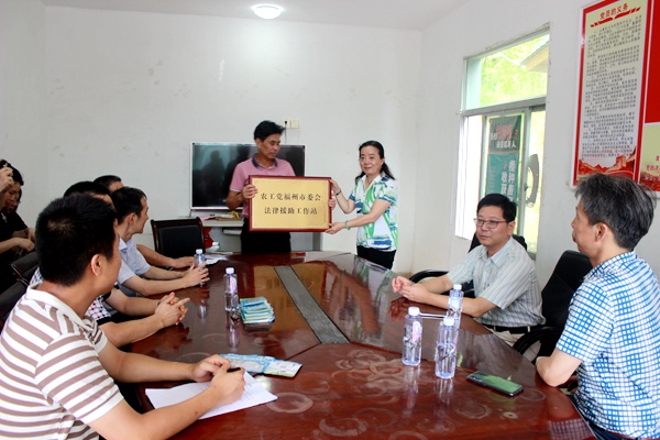 市委会法律支部和社法委在蒋山村举行“农工党福州市委会法律援助工作站”授牌仪式。陈向红强调,农工党福州市委会驻蒋山村法律援助工作站的挂牌,是市委会法律服务工作的新探索,更是市委会在全市社会公益活动的新起点。市委会将按照法律援助工作的总体要求和工作站的职责定位,秉承“以人为本、扶弱助困、维护公正、热情服务”的精神,坚持“责任、维权、公正、高效”的工作理念,采取灵活多样的方式,积极探索法律援助新模式,充分利用农工党福州市法律资源和人才资源优势,面向社会弱势群体,通过提供咨询服务、办理援助案件等手段,切实履行法律援助职责,扎实有效地开展法律援助工作,切实做到“残者必援、老者必援、弱者必援、贫者必援”,真正把法律援助工作站建成国家法律、法规宣传站、反映社情民意的观察站、与人民群众的联系站,帮助更多的社会弱势群体享受到法律的阳光。