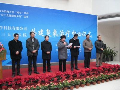 为落实中共江苏省委统战部牵头组织实施的“统一战线服务沿海开发”“同心”活动,12月21日,由农工党江苏省委与农工党南通市委牵线,南京路美科技有限公司与南通市第三人民医院共建臭氧治疗中心仪式在南通市第三人民医院举行。江苏省政协副秘书长、农工党江苏省委副主委肖渡,中共南通市委统战部副部长朱德炎,农工党江苏省委联络处副处长王夫玉,农工党员、南京路美科技有限公司董事长耿献会以及南通市第三人民医院领导王陆军、夏照明、陈松等出席活动。共建仪式由南通市政协副主席、农工党南通市委主委陈宋义主持。