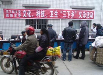 2011年12月31日,在元旦暨新春佳节即将来临之际,农工党绵阳市委在江油市八一乡隆重举办了文化、科技、卫生“三下乡”活动。我党市委中医、儿科、呼吸科、骨科等科别的党员医疗专家23人不畏严寒认真细致的给前来咨询的每一位村民检查诊断,三个小时里共为200余人进行了诊断和咨询,受到当地群众的好评。活动得到江油市八一乡前进卫生院大力支持,市政协副主席、主委沈其霖,副主委陈实,秘书长赵朝晖参加了活动。(绵阳市委会)