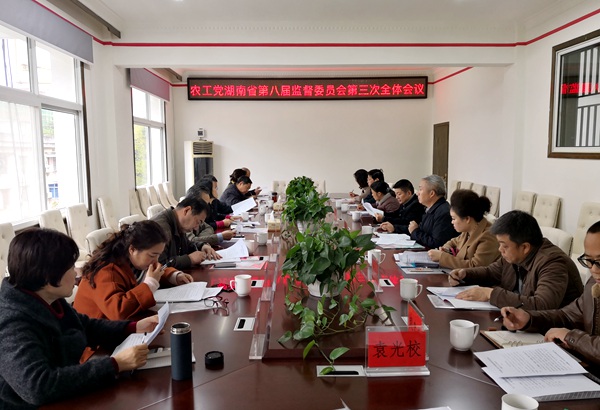 2018年11月21日-22日,农工党湖南省第八届监督委员会第三次全体会议在平江县委党校召开。农工党湖南省委会专职副主委、省监督委主任蒋秋桃主持会议并讲话。省监督委副主任郭晋云、夏宏宇及部分省监督委委员参加会议,各市监督委主任,未成立监督委的市委会专职副主委、秘书长列席会议。