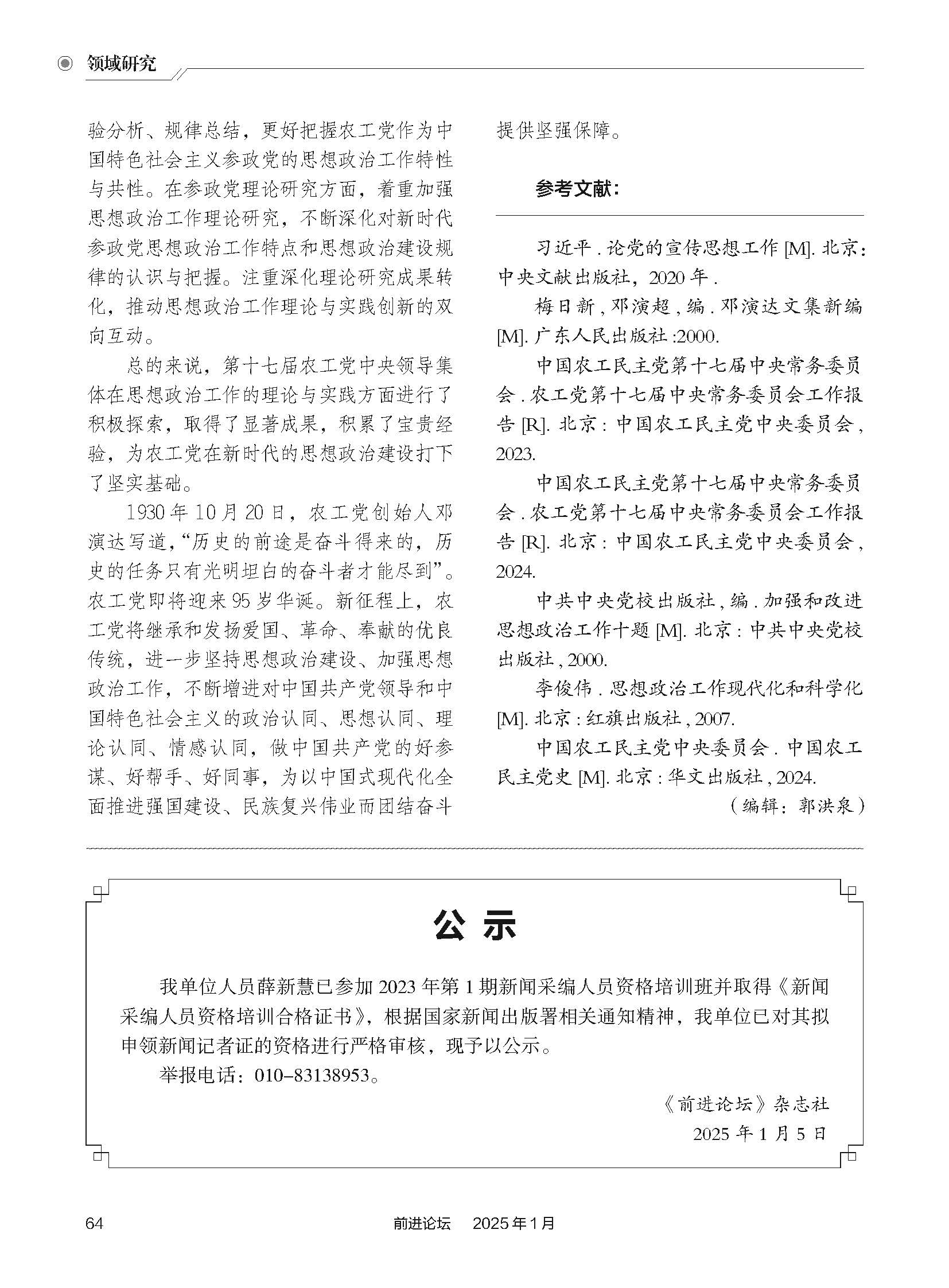 ① 凡本网注明“来源:农工党中央”的所有文字、图片和音视频稿件,版权均属农工党中央和农工党中央网站所有,任何媒体、网站或个人如有需要链接转载或其它 方式调用者,请注明摘自“农工党中央网站”或相关字样。
