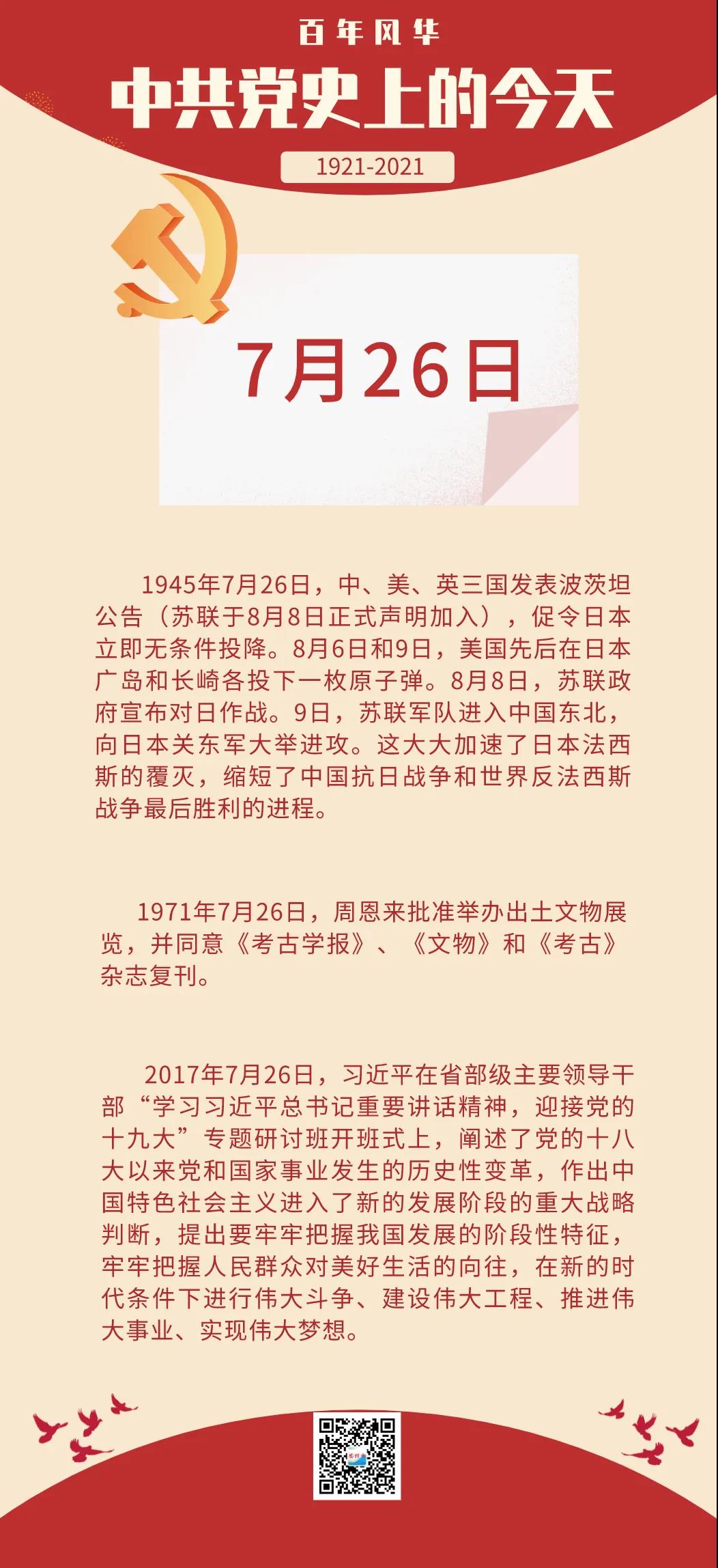 百年风华•中共党史上的今天(7月26日)