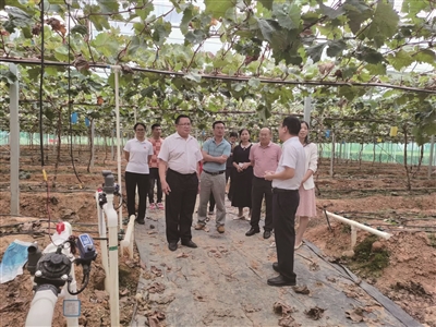 调研组在田林县利周瑶族乡爱善村阳光玫瑰葡萄园实地参观
