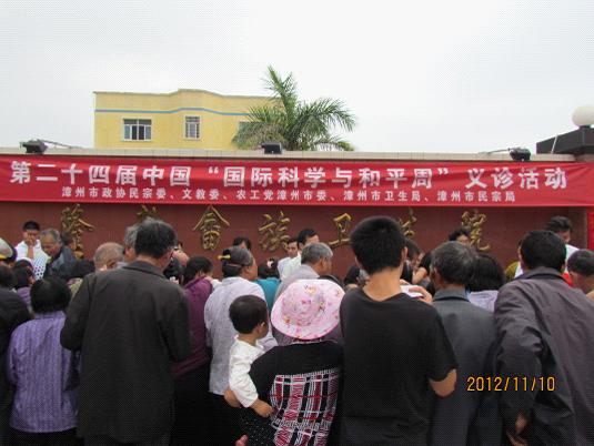 11月10日,由漳州市政协民宗委、文教委,农工党漳州市委,漳州市卫生局,漳州市民宗局主办的第二十四届中国“国际科学与和平周”义诊活动在龙海市隆教乡举行。漳州市政协副主席李惜真,漳州市政协副主席、农工党漳州市委主委杨银玉,漳州市政协文教委主任于建生,漳州市卫生局局长刘育萍,漳州市民宗局局长罗豫生,农工党漳州市委副主委赵学田、连学坚、林如凤及有关部门领导出席活动。