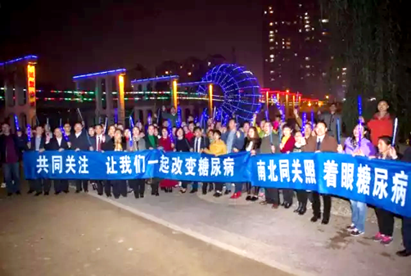 12日晚8时,农工党江苏省委会医卫委专家成员在淮安市中国南北地理分界线标志园参与了由中华医学会糖尿病学分会、江苏省医学会糖尿病分会和淮安市卫计委联合主办的联合国糖尿病日“蓝光行动”启动仪式,旨在唤起政府、媒体及公众对糖尿病防治工作的关注,共同为糖尿病防治工作承担各自的责任。当地医护人员、糖尿病患者、群众共500余人见证了这次令人激动难忘的活动,活动表达了政府主导防控糖尿病的决心。