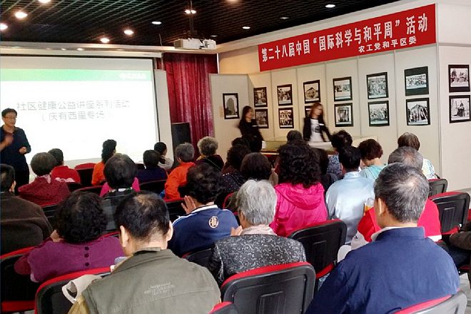 近日,农工党天津市和平区委会按照农工党中央“关于举办第二十八届中国‘国际科学与和平周’活动的决定”的要求,以“科技强国 ,和平发展”为主题,在和平区南市街庆有西里开展了科普讲座和义诊咨询活动。