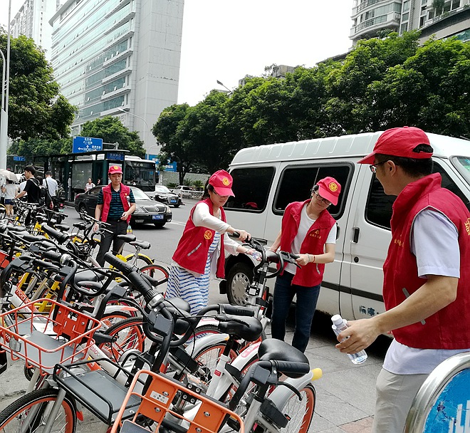 2017年9月7日、22日,为进一步推动省市共建,助力福州创建全国文明城市,农工党福建省委会机关根据共建社区汤门社区统一安排,通过“福建志愿服务网”选派了8名志愿者参加社区“区域化党建联盟志愿者服务月”志愿服务活动,两次前往湖东路整理共享单车,宣传文明交通礼仪。志愿者们不畏烈日,认真负责的将所巡路段的共享单车摆放归位、排列整齐,一丝不苟的态度不仅影响了骑车、停车的市民,也赢得了来往行人的高度赞赏,为全国文明城市创建贡献了农工党的一份力量。(农工党福建省委会机关文明办)
