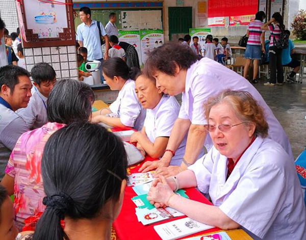 6月21日一大早,总支第二支部委员、暨南大学第一附属医院董甦主管护师,总支党员高嘉慧、张碧宁副主任医师、潘瑞玲主管护师联合农工党广州第一人民医院支部黄为民主任医师、林秀梅副主任医师等就登上大巴,经过四个多小时的车程,来到了革命老区汕尾市海丰县黄羌镇。21下午和22日上午,党员们分别赴海丰县黄羌中学和惠东县高潭镇高潭中心小学,为当地学校师生和干部群众开展了两场“卫生健康宣传咨询及义诊服务”活动。在活动现场,党员们将《预防病从口入》、《预防流行性感冒》、《烧伤处理》等许多各类健康保健宣传资料派发给前来咨询的当地师生和干部群众,围绕大家提出的种种健康问题,党员们一一耐心细致地解答。活动深入人心,得到了高度评价。
