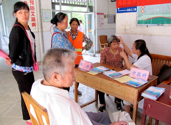 江村是中共桂林市委统战部及各民主党派的“同心”实践基地。6月13日,在市委会专职副主委邓翠荣的带领下,农工党桂林市医卫界党员专家、机关干部一行6人到阳朔县江村开展第九届中国环境与健康宣传周活动。活动当天,市委会医卫界的党员们热情地为乡民进行义诊,涉及内科、外科、老年科等。医疗专家李林听说村里有一位86岁的五保户老大娘骨折了不能来,还专门到她住的屋子去问诊。此次活动市委会不仅分发了200多份《海洋环境与健康》宣传册给乡民,还购买了常用药品,用于义诊及赠送给村卫生室。