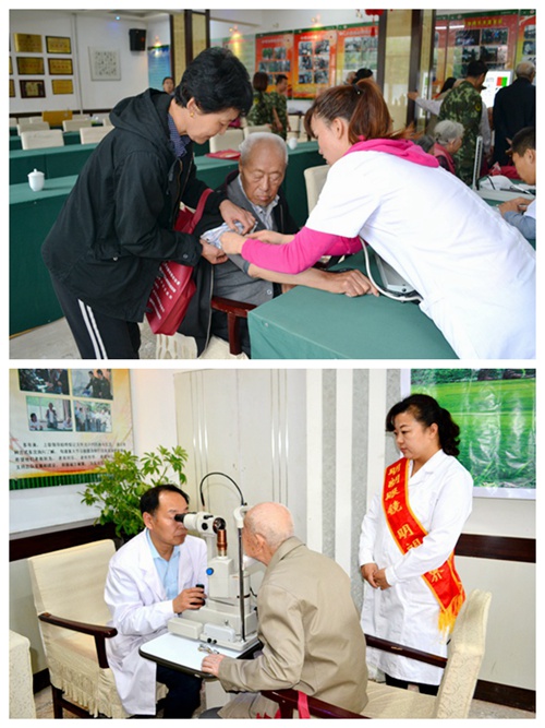 活动现场,来自呼和浩特市第一医院、第二医院、蒙中医院的妇科、内科、预防保健科的医疗专家和内蒙古明朗国际光学眼镜连锁有限公司的眼科专家免费为干休所的离退休老干部进行视力测试、眼科检查和血压测量,医疗专家耐心讲解如何消除视疲劳、爱眼护眼和预防青光眼、白内障等方面的知识,给出专业的意见和建议,并现场为30名老干部免费配镜。活动期间还开展了环境保护知识宣传,发放了2017(第十届)“中国环境与健康宣传周”宣传手册和宣传袋50余份,受到干休所老干部们的一致好评。