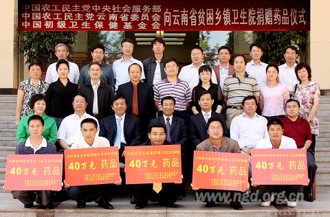 农工党中央社会服务部和由农工党中央主办的中国初级卫生保健基金会长期关心和支持我省农村卫生事业发展,定点帮扶我省乡镇卫生院,举办乡村医生培训,先后捐赠了一辆救护车和价值152万元的医疗用品和药品,资助两所定点乡镇卫生院院长参加农工党中央举办的院长培训班,与农工党云南省委共同主办首届定点医院经验交流研讨会,向我省相关定点医院捐赠价值260万元的医疗设备,对帮助缓解当地群众缺医少药状况和促进我省卫生事业发展发挥了积极作用。