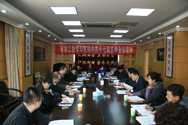 会上,先后传达学习了《中国共产党第十七届中央委员会第五次全体会议公报》、《桑国卫在农工党中央理论学习中心组学习中共十七届五中全会精神专题座谈会上的讲话》、《中共中央关于制定国民经济和社会发展第十二个五年规划的建议》以及中央统战部部长杜青林在省部级党外领导干部专题研究班开班式上的讲话精神和中共甘肃十一届十次全会精神。