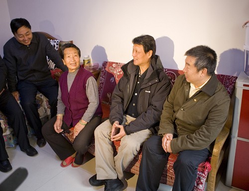 在恒安新区,陈宗兴副主席走进曹进安老人家中,一进门,融融的暖意扑面而来。陈宗兴、周然拉着老人的手,坐在客厅里聊起来。“你原来住在哪儿呀?这房子住着满意吗?”曹进安老两口说,他们原先住在煤峪口矿低矮的平房里,2009年搬到了这儿的新家,从此再不用打炭生火了,上厕所也不用去外面了,上下水都有。“这新房住着舒心呀。小区里还有医疗所,吃药用医保卡就行,可方便呢。”听到这些,陈宗兴欣慰地笑了,他说,党中央、国务院非常关心广大煤矿职工群众的生活,采煤沉陷区综合治理和棚户区改造工程就是一项民心工程、德政工程和安居工程。改造的目的就是要改善“两区”人民群众的居住条件,让大家生活得更幸福。中共山西省委、省政府把转型发展、跨越发展作为全省工作的主题,力求在发展中促转型,在转型中谋跨越,推动山西科学发展。他说,相信在中共山西省委、省政府的领导下,全体山西人民共同努力,一定能够实现山西经济社会又好又快发展。